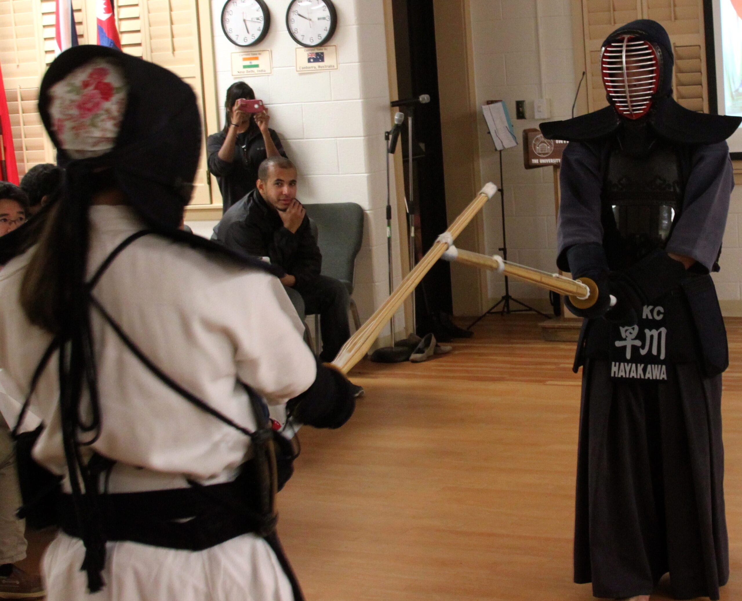 A kendo demonstration was given and those that attended got an up close and personal look at the art of Japanese swordplay. Alex Arthey, a student studying Japanese at UT, sang a traditional Japanese song at the I-House with other volunteer students.