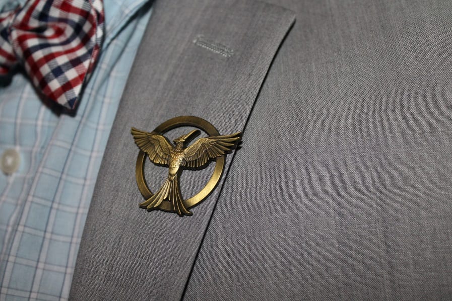 The infamous Mocking Jay pendant is worn at the event.