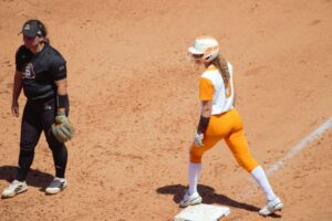 KNOXVILLE, Tenn. - Nicola Simpson during the Tennessee Lady Volunteers softball game vs. the East Carolina Pirates on April 24, 2022. (Ryan Sylvia | TNJN)